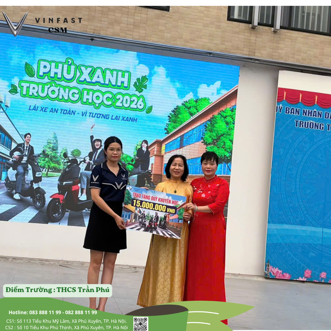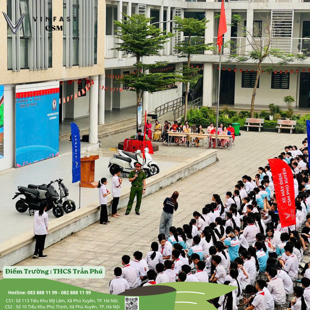 VinFast CSM trân trọng gửi lời cảm ơn tới Ban giám hiệu, tập thể giáo viên và toàn thể học sinh Trường THCS Trần Phú đã phối hợp tổ chức thành công chương trình. Đồng thời, xin cảm ơn sự đồng hành từ VinFast và sự hỗ trợ tuyên truyền của đồng chí Nghiêm Đình Văn – lực lượng cảnh sát trật tự.